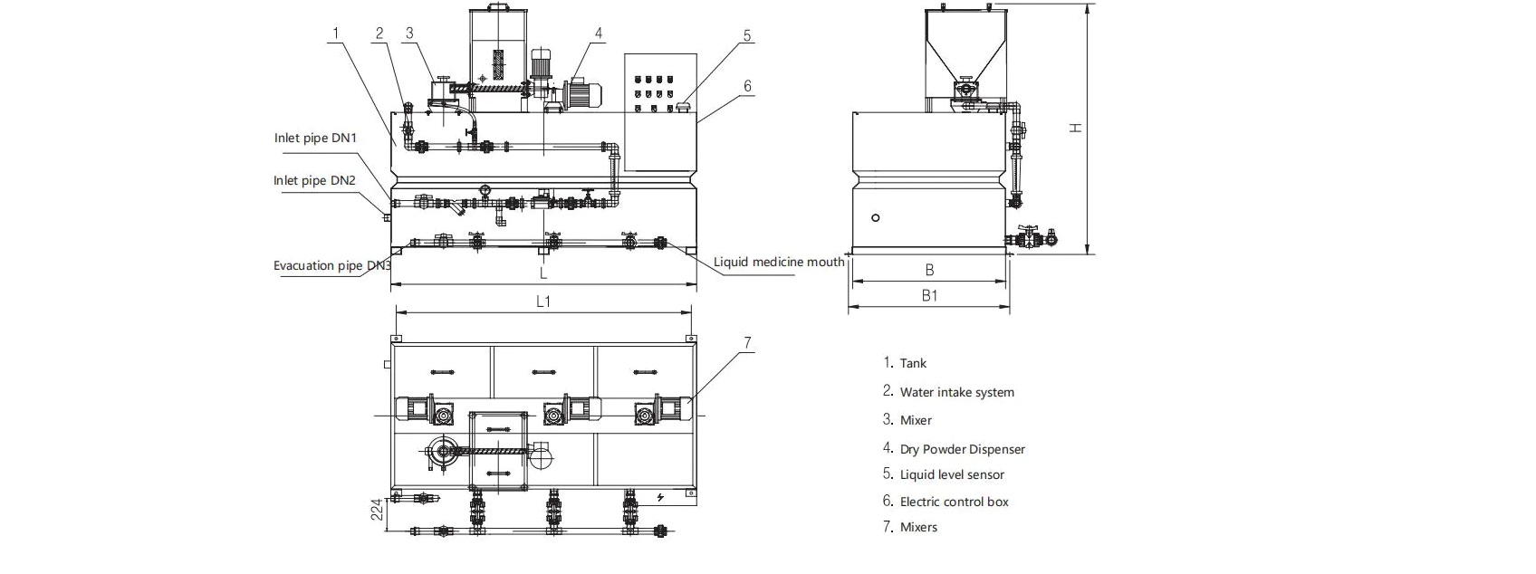 جهاز الجرعات المتكامل مُجهز بخزان تخزين المواد الكيميائية، ويمكن نقل المواد الكيميائية تلقائيًا إلى نظام الجرعات عبر الأنابيب. وفقاً لاحتياجات معالجة مياه الصرف الصحي، يمكن للجهاز ضبط حجم النقل تلقائياً لضمان إمدادات كافية من المواد الكيميائية.