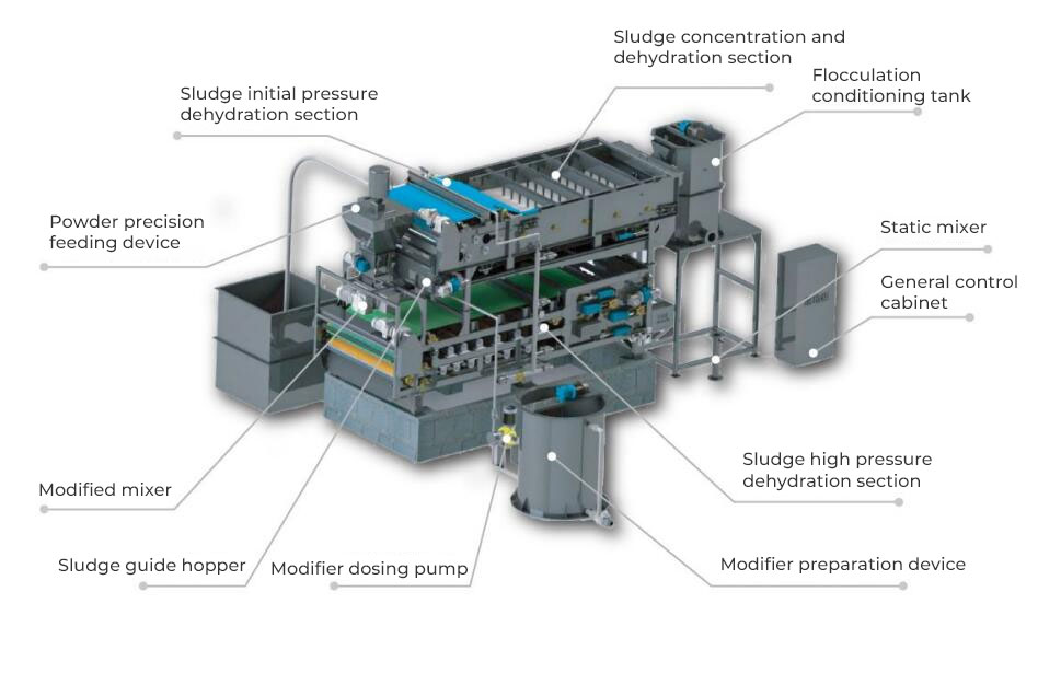 في بيئة تكون فيها حماية البيئة وإعادة تدوير الموارد أمرًا عاجلاً بشكل متزايد ، آلة إزالة المياه حمأة الحزام عالي الجفاف أعاد تعريف الحدود الفنية لحقل إزالة المياه الحمأة من خلال تكامل التكنولوجيا والتصميم الميكانيكي. حققت الجهاز ابتكارًا كاملًا من تركيز الحمأة إلى الجفاف العميق من خلال تحسين وضع التشغيل الميكانيكي ومنطق التشغيل.